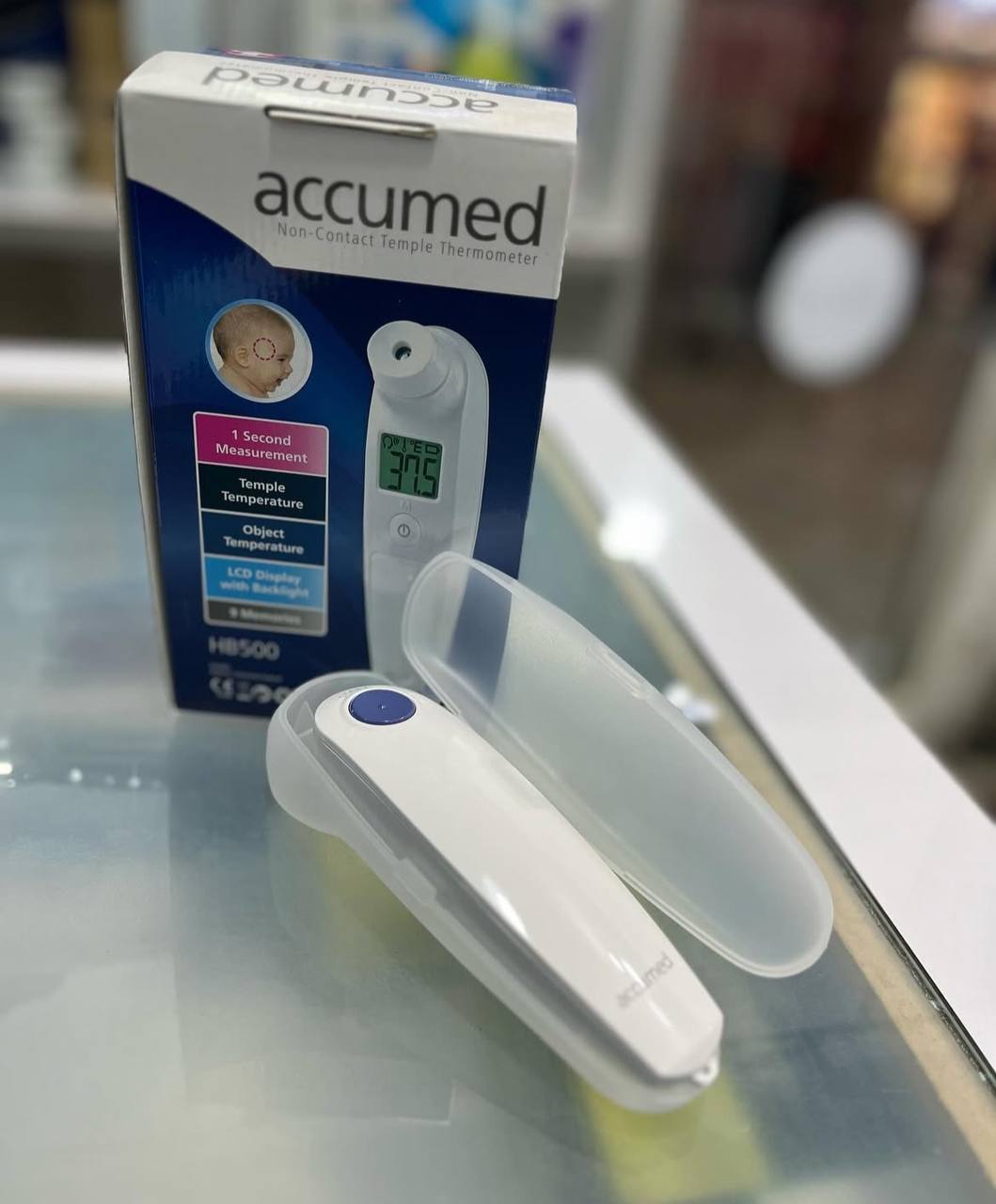 تب سنج دیجیتال اکیومد مدل HB500 دارای 9 حافظه است. به کمک این دستگاه هم درجه حرارت بدن و هم دمای اشیا را میتوان اندازهگیری نمود. این محصول ساخت کشور سوئیس بوده و از کیفیت بالایی برخوردار است. به کمک این دماسنج دیجیتال تنها در عرض 1 ثانیه میتوان به میزان درجه دمای بدن و اشیا پی برد. درجه حرارت دمای بدن انسان در حالت طبیعی حدود 37 درجه سانتیگراد است. این دستگاه مجهز به هشدار تب بالا بوده و در صورتی که حرارت بدن خطرناک باشد، آلارم میدهد. برای اینکه این دستگاه کار کند، هیچ نیازی به تماس با بدن ندارد و این مسئله یکی از مزایای آن محسوب میشوند. چون بسیاری از کودکان دوست ندارند و اجازه نمیدهند تا به کمک تبسنجهای معمولی اقدام به اندازهگیری تب آنها کرد
