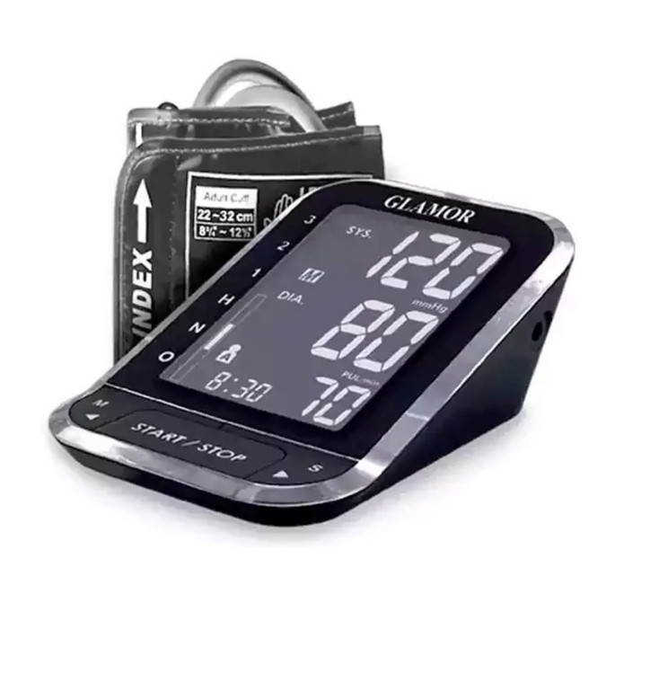 فشارسنج دیجیتالی بازویی گلامور مدلTMB987 جهت اندازه گیری فشارخون، ضربان قلب و همچنین ذخیره نتایج آن است. نتیجه اندازه گیری این فشارسنج با فشارسنج هایی که از روش سنتی و دقیق گوشی پزشکی و کاف استفاده میکنند کاملا برابر است. این محصول دارای صفحه نمایش LCD دیجیتال بوده و دارای حداکثر 120 جایگاه ذخیره حافظه برای دو کاربر (هر کاربر 60 جایگاه ذخیره حافظه) است. این محصول دارای تکنولوژی سوم اندازه گیری فشارخون در حین باد کردن (آخرین تکنولوژی در سراسر دنیا) بوده و تنها برای استفاده خانگی بزرگسالان است. این محصول برای اندازه گیری فشارخون شریانی و اندازه گیری فشارخون در شرایط عادی است. این محصول با برق و باتری نیز کار می کند. کاف این دستگاه مناسب دور بازوهای 22 تا45 سانتی متری است. از دیگر ویژگیهای این محصول این است که دارای نمایشگر WHO تشخیص آریتمی قلب بوده . تاییدیه CE اروپا و FDA آمریکا را دارا است. نمایش میانگین 3 مورد قبلی، کیف مخصوص حمل و نقل و ضد ضربه بودن آن، کاف آداپتور و دفترچه راهنمای فارسی از اقلام همراه این محصول به شمار میرود. فشارسنج دیجیتالی بازویی گلامور مدلTMB987 انتخاب مناسبی برای افرادی است که به فشار خون بالا دچار بوده یا فردی از اطرافیان آنها به فشار خون دچار هستند. فشارسنج دیجیتالی بازویی گلامور مدلTMB987 را میتوان علاوه بر منزل در درمانگاه و بیمارستان هم استفاده کرد. این محصول برای افراد سالمند هم بسیار مناسب است بنابراین میتوان از آن در منزل و خانه سالمندان هم استفاده کرد.